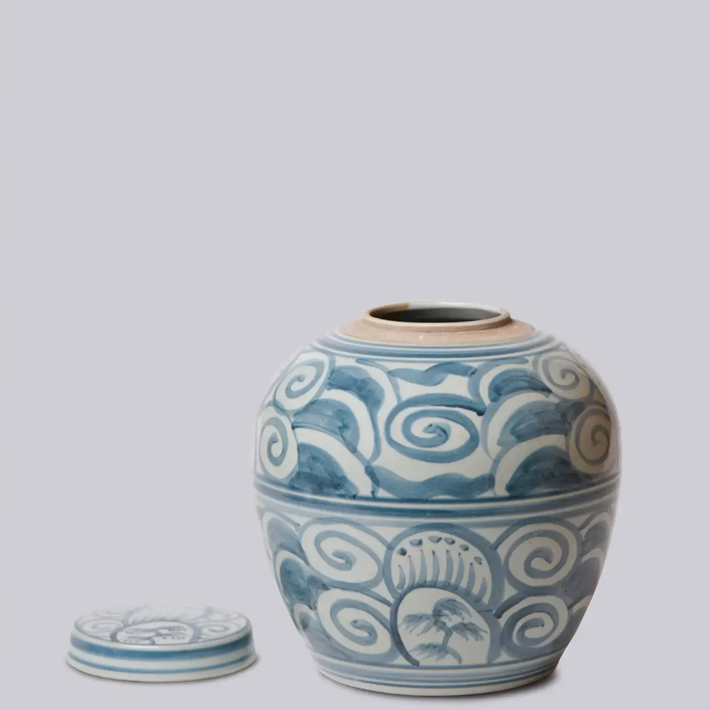 Curlicue Blue and White Porcelain Storage Jar