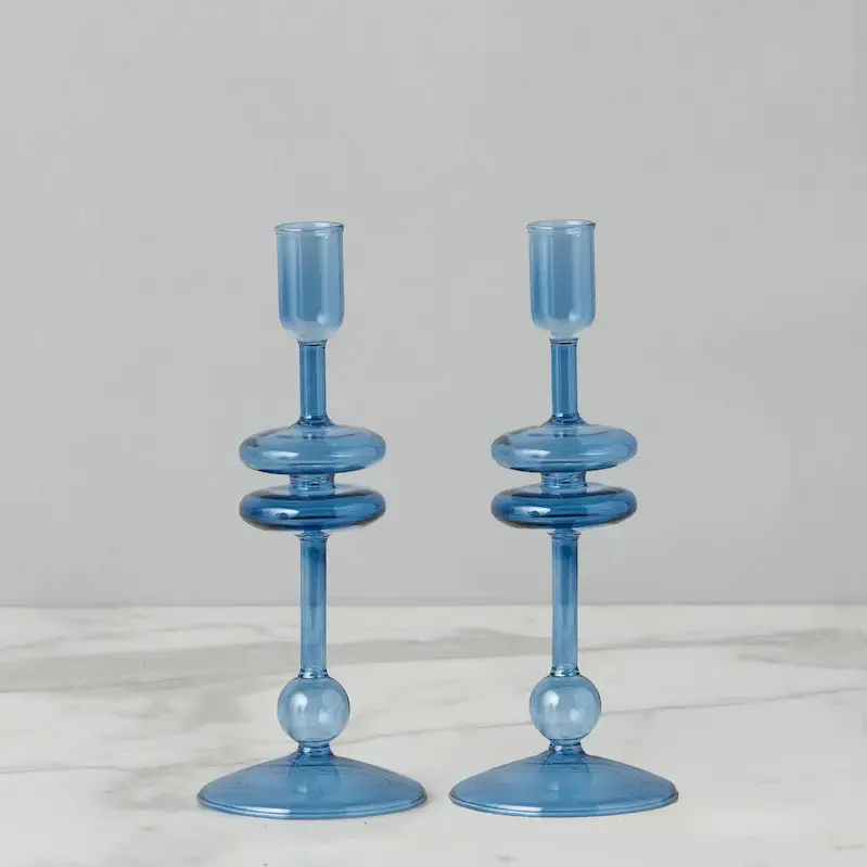 Glass Candlestick Pair- Sapphire Blue